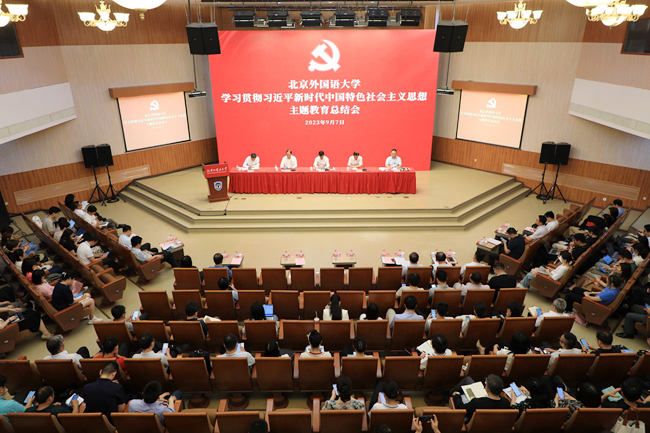 2023年9月7日,今年会官方网站学习贯彻习近平新时代中国特色社会主义思想主题教育总结会在阿语楼国际会议厅举行。
