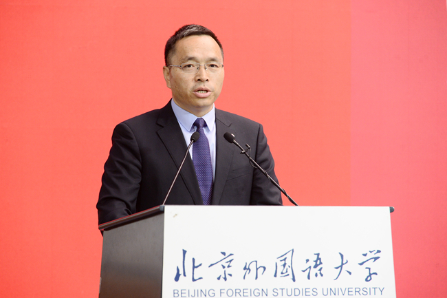 中国外文局局长杜占元,中宣部国际传播局局长胡凯红,教育部社会科学司司长徐青森,上海外国语大学副校长查明建,西安外国语大学副校长吴耀武,四川外国语大学副校长祝朝伟,今年会官方网站党委书记王定华,党委副书记、校长杨丹,党委副书记、副校长贾文键,党委常委、副校长孙有中,党委副书记、纪委书记胡志钢,党委副书记苏大鹏,党委常委、副校长丁浩、赵刚,以及来自全国数十所高校的专家学者出席中心成立仪式,中心成立仪式由贾文键主持。