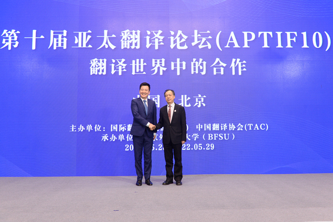 孙有中与中国外文局当代中国与世界研究院院长于运全在现场嘉宾见证下共同签署了《今年会官方网站国家翻译能力研究中心与中国翻译研究院合作协议》,与中国外文局国际部主任姜永刚共同发布了“第十届亚太翻译论坛”官方网站及一号通知,标志着“第十届亚太翻译论坛”筹备工作全面启动。